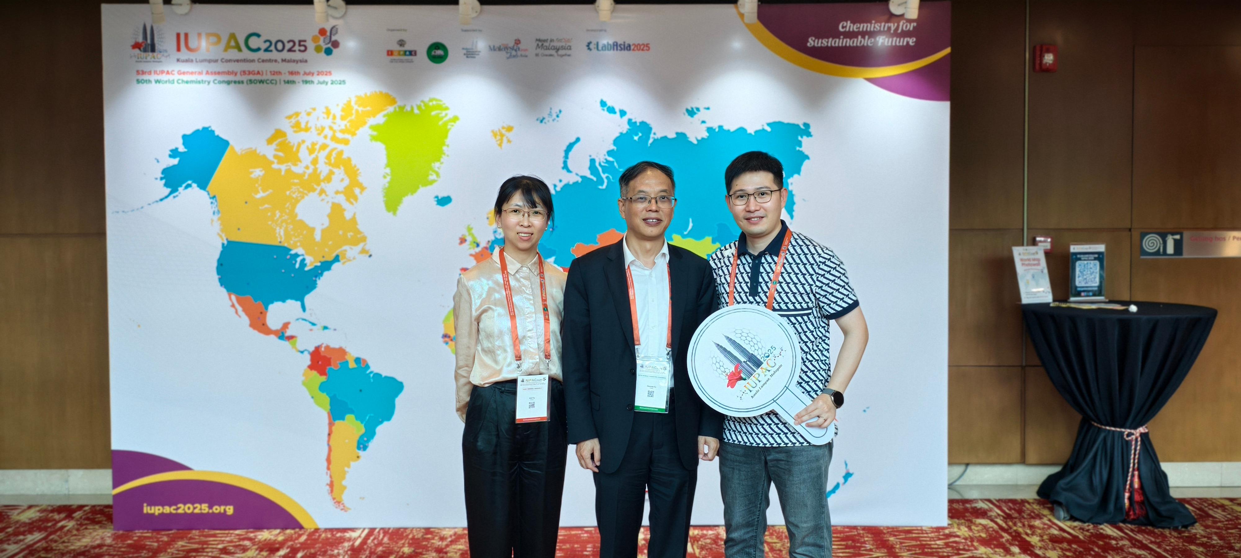 From July 12 to 19, the 53rd IUPAC General Assembly & the 50th World Chemistry Congress took place in Kuala Lumpur, Malaysia, under the theme “Chemistry for a Sustainable Future”. Mr. Li Haoran, Honorary Dean of the NHU Research Institute, Ms. Yu Lili, Assistant Dean and Deputy Director of the Product R&D Department, and Mr. He Qiyang, Deputy Director of the Science and Technology Cooperation Department, joined over 3,000 chemists from around the world to explore the vital role of chemical science in addressing global sustainability challenges.